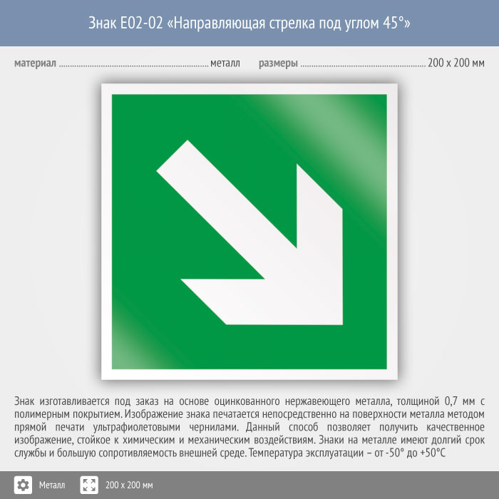 Знак E02-02 «Направляющая стрелка под углом 45°» (металл, 200х200 мм) в Рыбинске купить