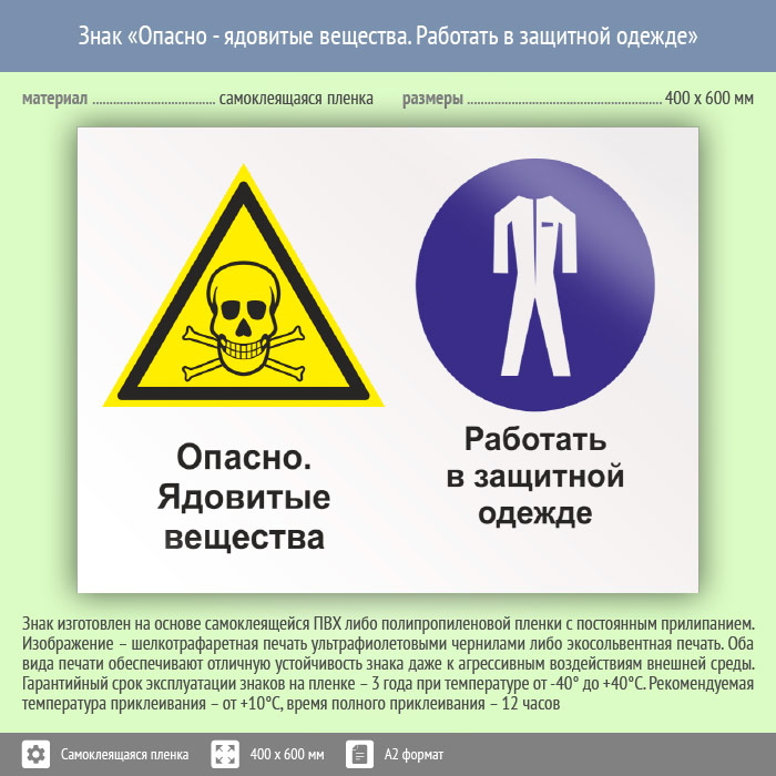Знак «Опасно - ядовитые вещества. Работать в защитной одежде», КЗ-42 (пленка, 600х400 мм) в Рыбинске купить