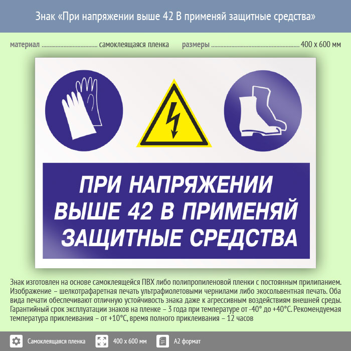 Знак «При напряжении выше 42 В применяй защитные средства», КЗ-72 (пленка, 600х400 мм) в Рыбинске купить