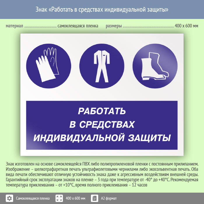 Знак «Работать в средствах индивидуальной защиты», КЗ-81 (пленка, 600х400 мм) в Рыбинске купить