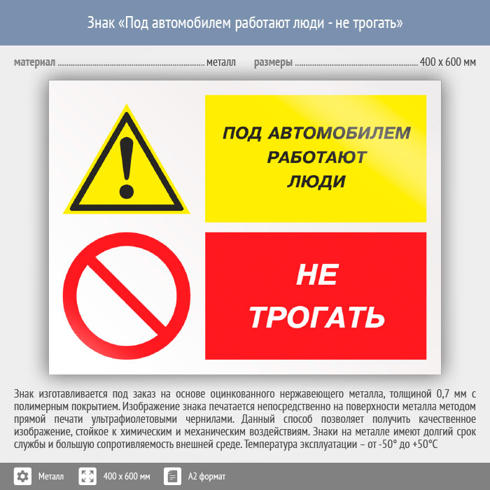 Знак «Под автомобилем работают люди - не трогать», КЗ-66 (металл, 600х400 мм) в Рыбинске купить
