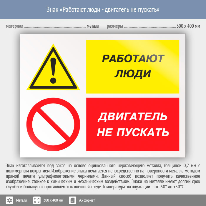 Знак «Работают люди - двигатель не пускать», КЗ-82 (металл, 400х300 мм) в Рыбинске купить