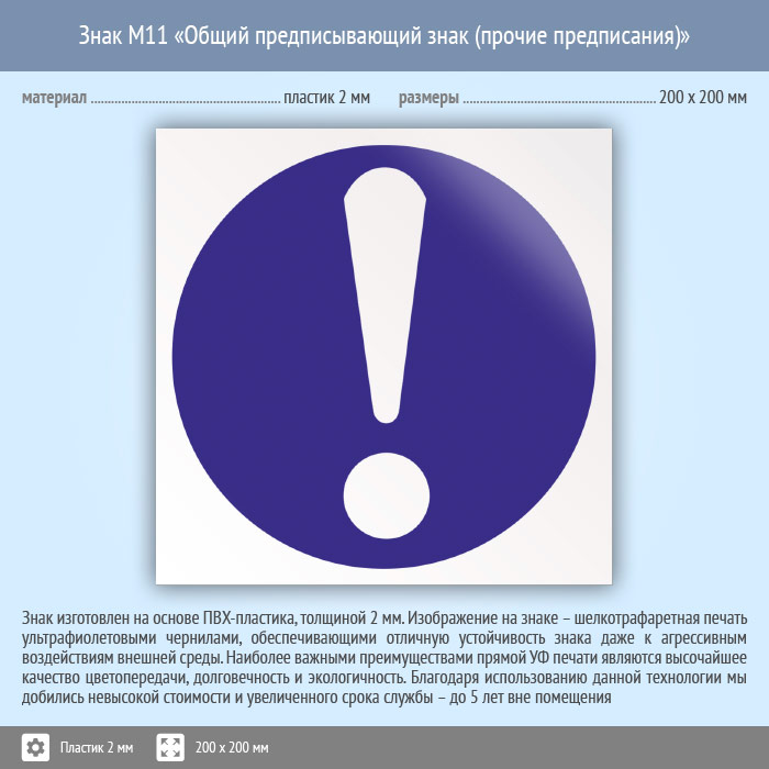 Знак M11 «Общий предписывающий знак (прочие предписания)» (пластик, 200х200 мм) в Рыбинске купить