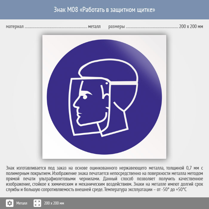 Знак M08 «Работать в защитном щитке» (металл, 200х200 мм) в Рыбинске купить