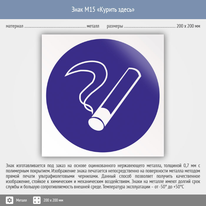 Знак M15 «Курить здесь» (исключен) (металл, 200х200 мм) в Рыбинске купить