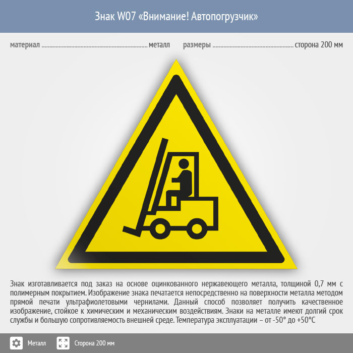 Знак W07 «Внимание! автопогрузчик» (металл, сторона 200 мм) в Рыбинске купить
