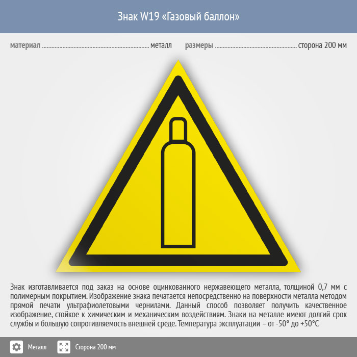 Знак W19 «Газовый баллон» (металл, сторона 200 мм) в Рыбинске купить