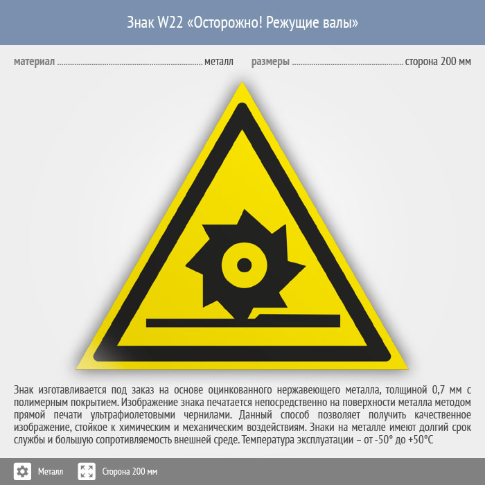 Знак W22 «Осторожно! режущие валы» (металл, сторона 200 мм) в Рыбинске купить