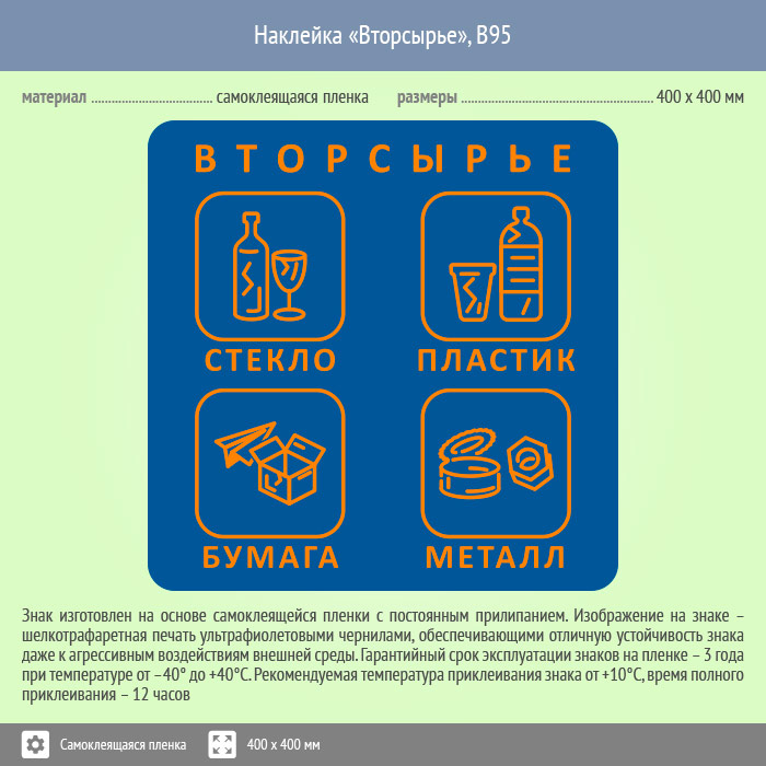 Наклейка на бак «Вторсырьё», B95 (пленка, 400х400 мм) в Рыбинске купить