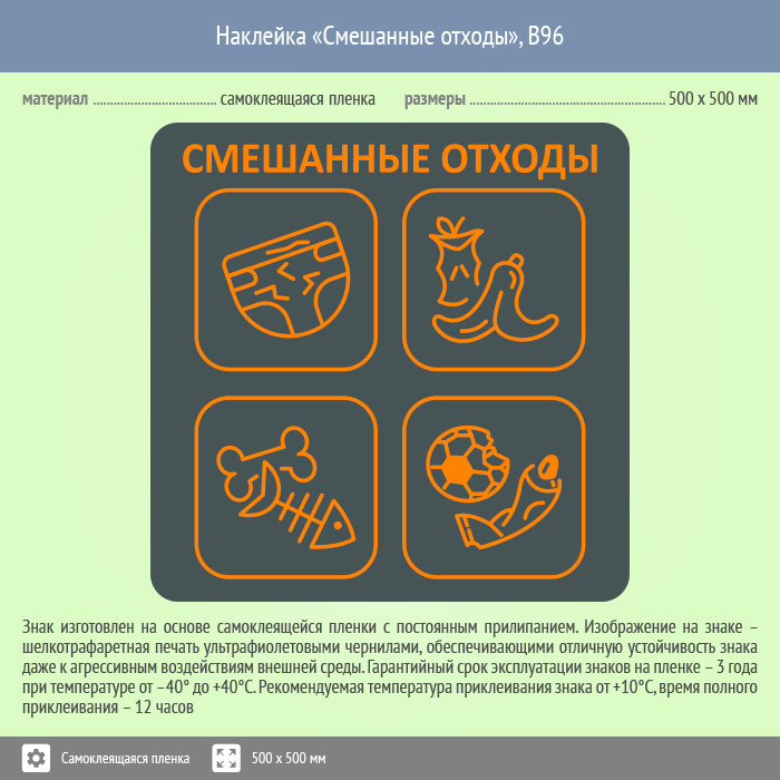 Наклейка на бак «Смешанные отходы», B96 (пленка, 500х500 мм) в Рыбинске купить