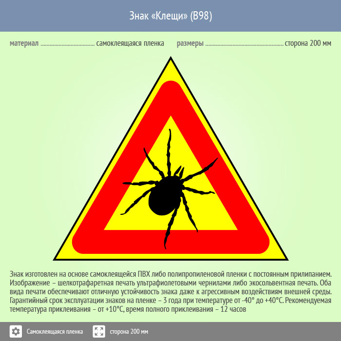 Знак «Клещи», B98 (пленка, сторона 300 мм) в Рыбинске купить