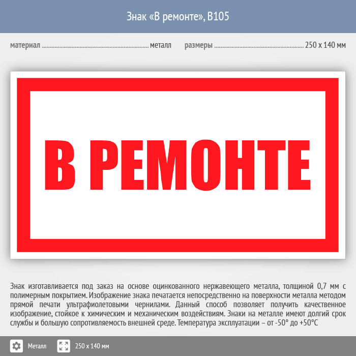 Знак «В ремонте», B105 (металл, 250х140 мм) в Рыбинске купить
