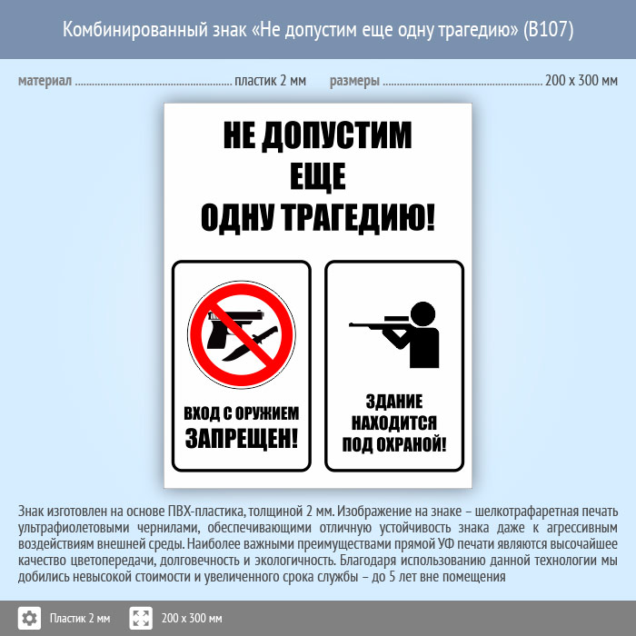 Комбинированный знак «Не допустим еще одну трагедию», B107 (пластик, 200х300 мм) в Рыбинске купить