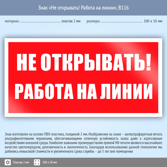 Знак «Не открывать! Работа на линии», B116 (пластик, 100х50 мм) в Рыбинске купить