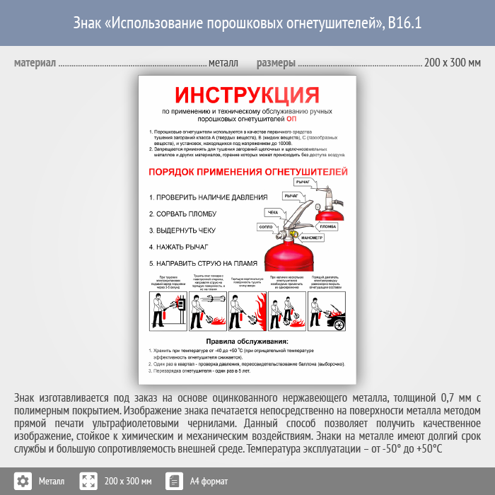 Знак «Использование порошковых огнетушителей», B16.1 (металл, 200х300 мм) в Рыбинске купить