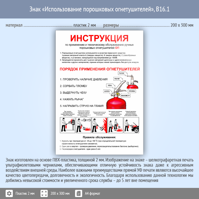 Знак «Использование порошковых огнетушителей», B16.1 (пластик, 200х300 мм) в Рыбинске купить