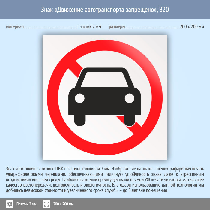 Знак «Движение автотранспорта запрещено», B20 (пластик, 200х200 мм) в Рыбинске купить