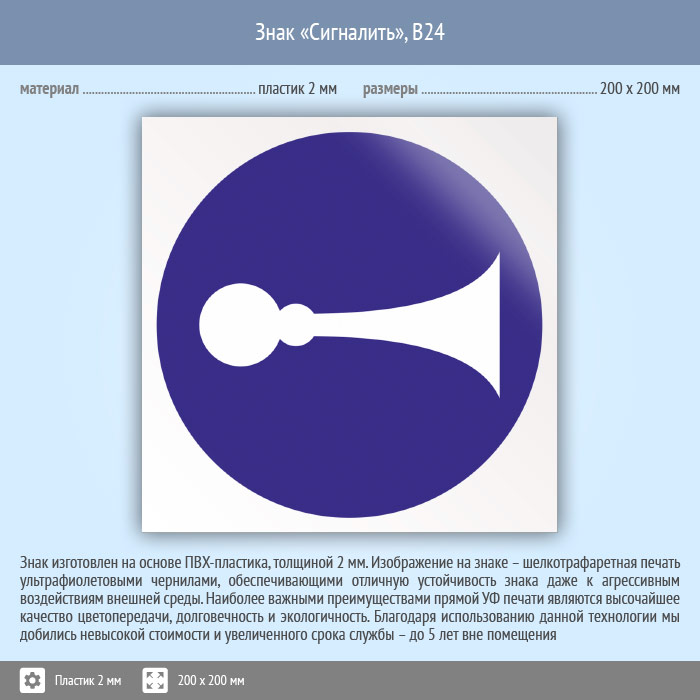 Знак «Сигналить», B24 (пластик, 200х200 мм) в Рыбинске купить