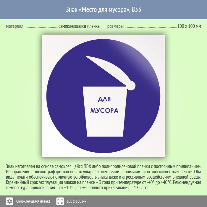 Знак «Место для мусора», B33 (пленка, 100х100 мм) в Рыбинске купить