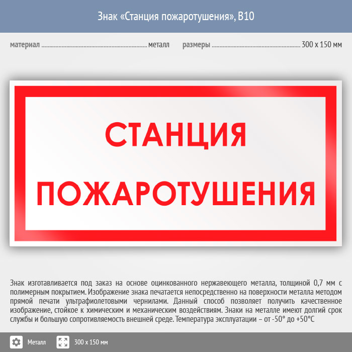 Знак «Станция пожаротушения», B10 (металл, 300х150 мм) в Рыбинске купить