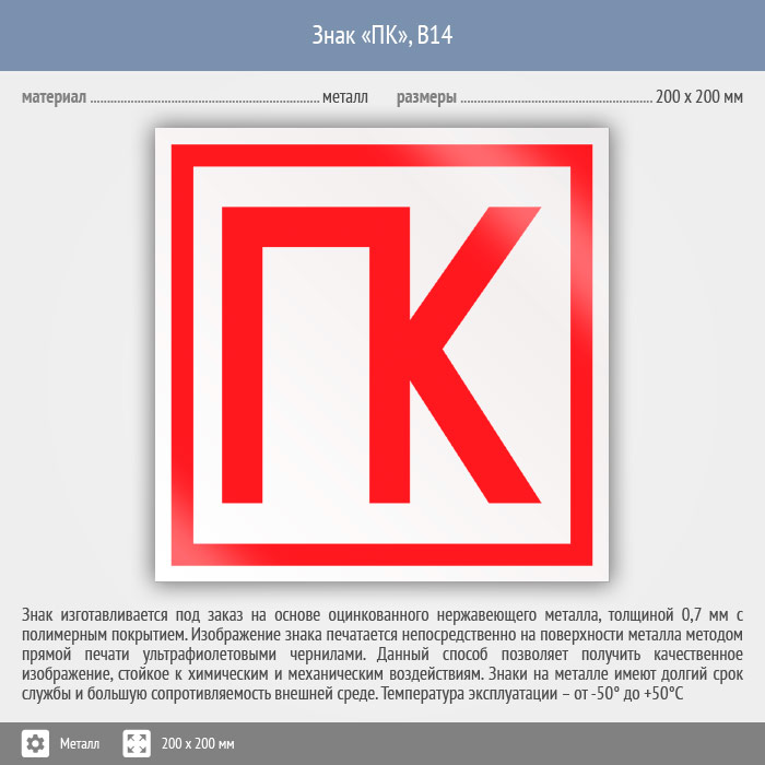 Знак «ПК», B14 (металл, 200х200 мм) в Рыбинске купить