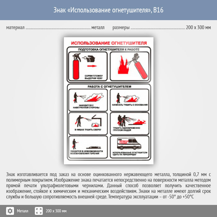 Знак «Использование огнетушителя», B16 (металл, 200х300 мм) в Рыбинске купить
