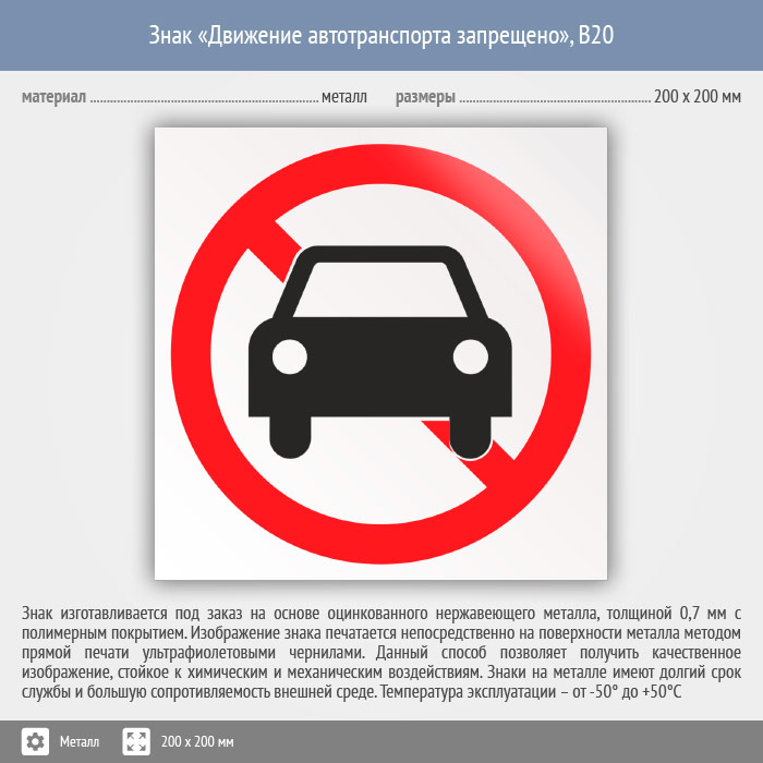 Знак «Движение автотранспорта запрещено», B20 (металл, 200х200 мм) в Рыбинске купить