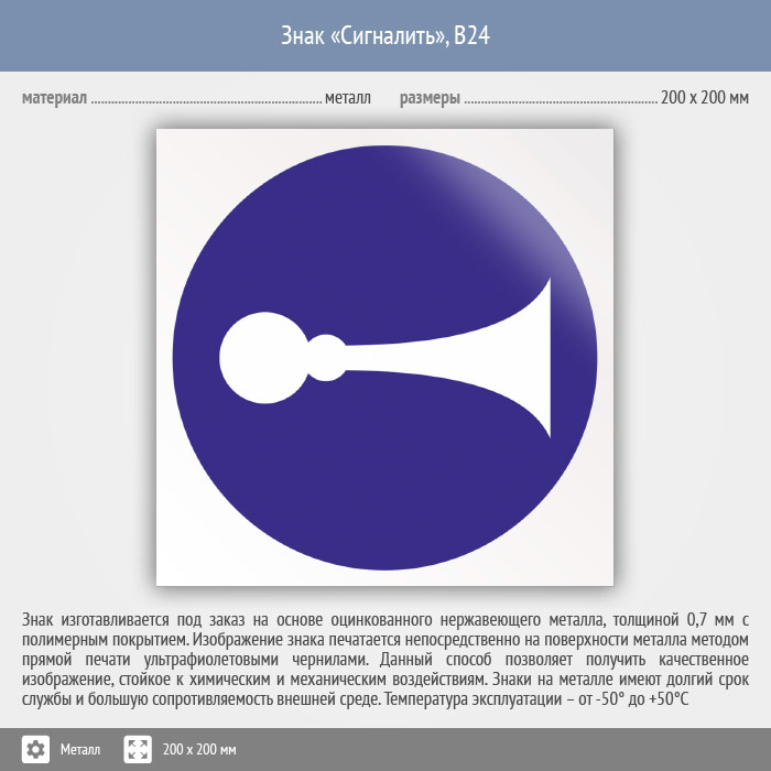 Знак «Сигналить», B24 (металл, 200х200 мм) в Рыбинске купить