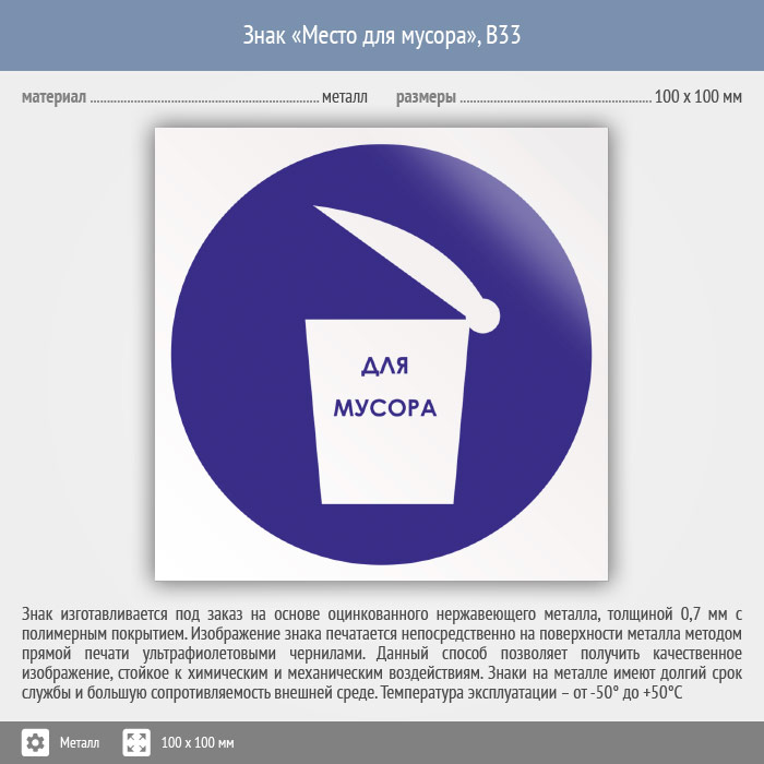Знак «Место для мусора», B33 (металл, 100х100 мм) в Рыбинске купить