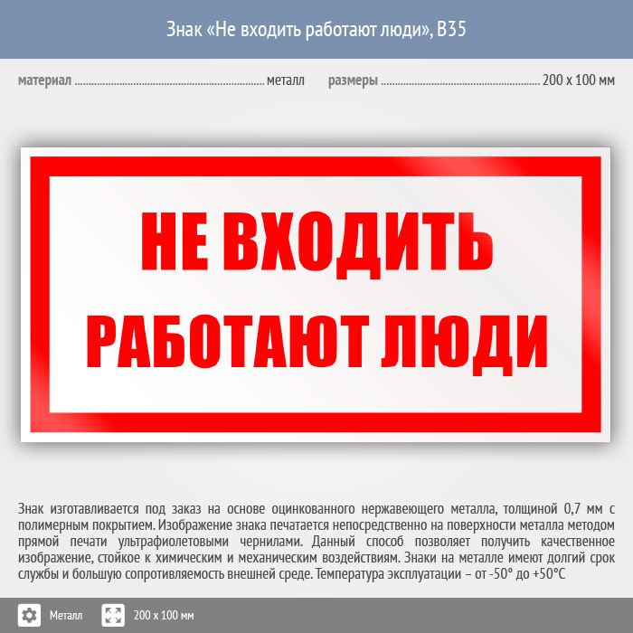 Знак «Не входить работают люди», B35 (металл, 200х100 мм) в Рыбинске купить