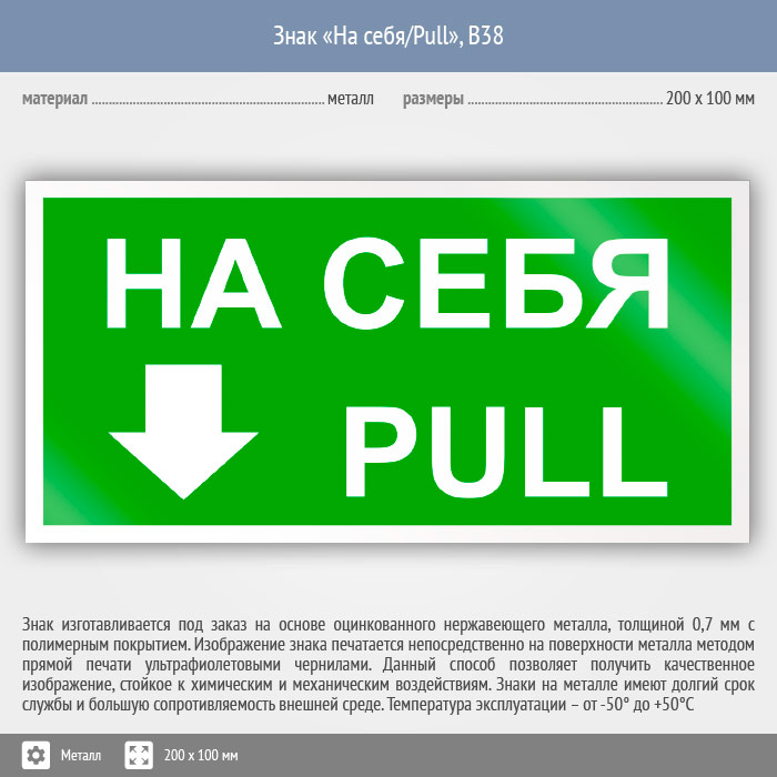 Знак «На себя/Pull», B38 (металл, 200х100 мм) в Рыбинске купить