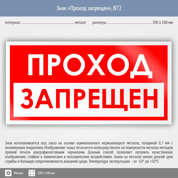 Знак «Проход запрещен», B72 (металл, 200х100 мм) в Рыбинске купить