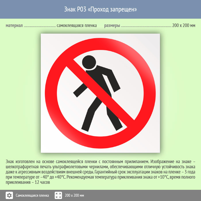 Знак P03 «Проход запрещен» (пленка, 200х200 мм) в Рыбинске купить