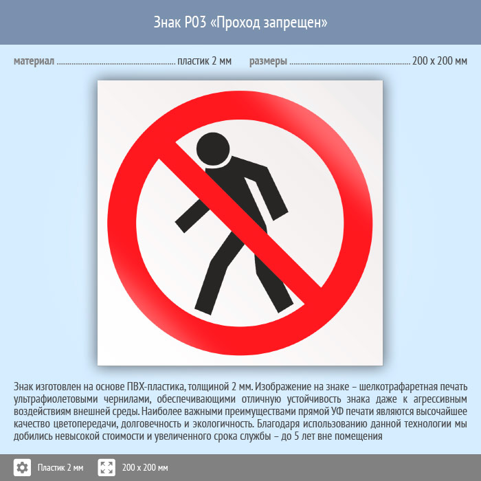 Знак P03 «Проход запрещен» (пластик, 200х200 мм) в Рыбинске купить