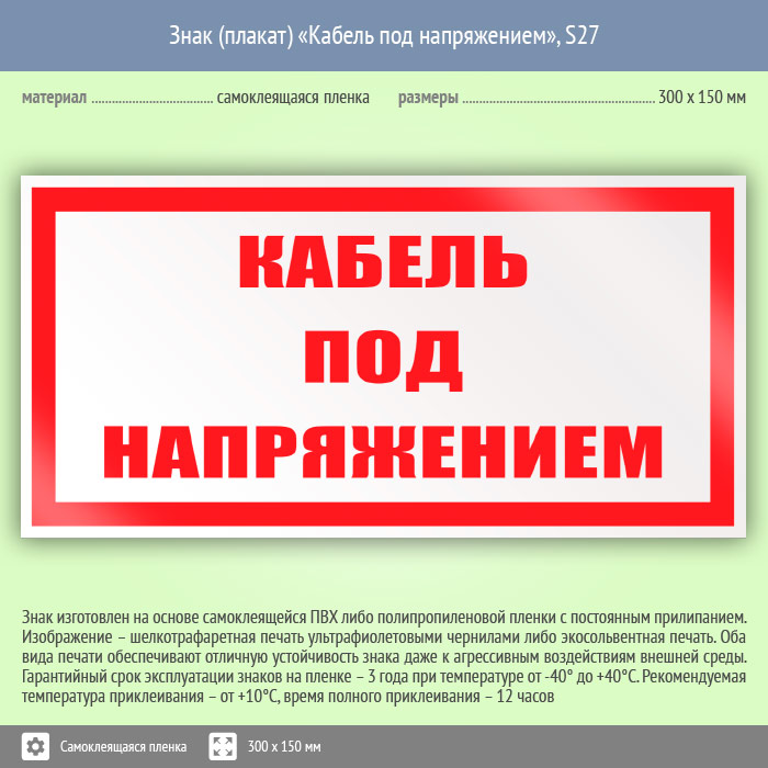 Знак (плакат) «Кабель под напряжением», S27