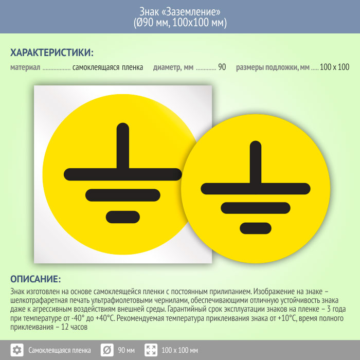 Знак (плакат) «Заземление», S46 (пленка, диаметр 90 мм, 100х100 мм) в Рыбинске купить
