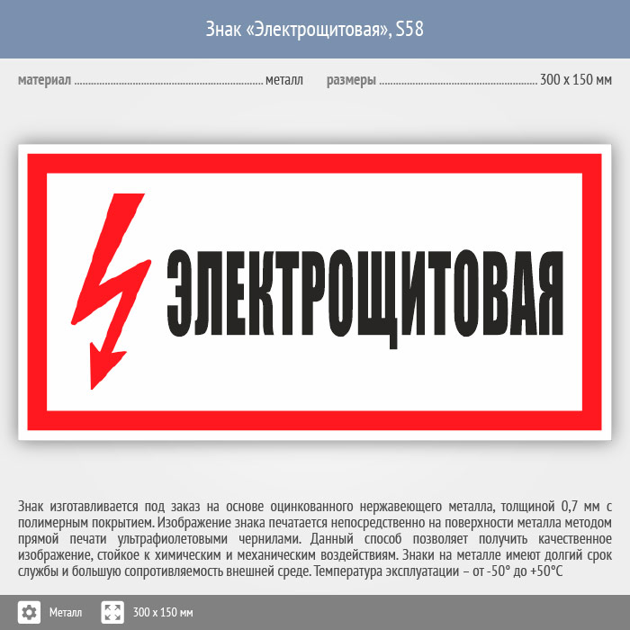 Знак (плакат) «Электрощитовая», S58 (металл, 300х150 мм) в Рыбинске купить