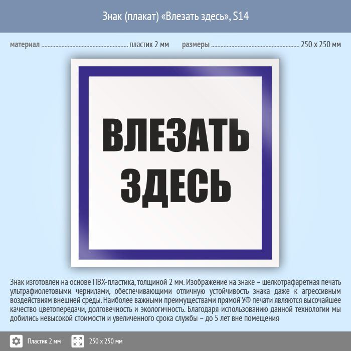 Знак (плакат) «Влезать здесь», S14 (пластик, 250х250 мм) в Рыбинске купить