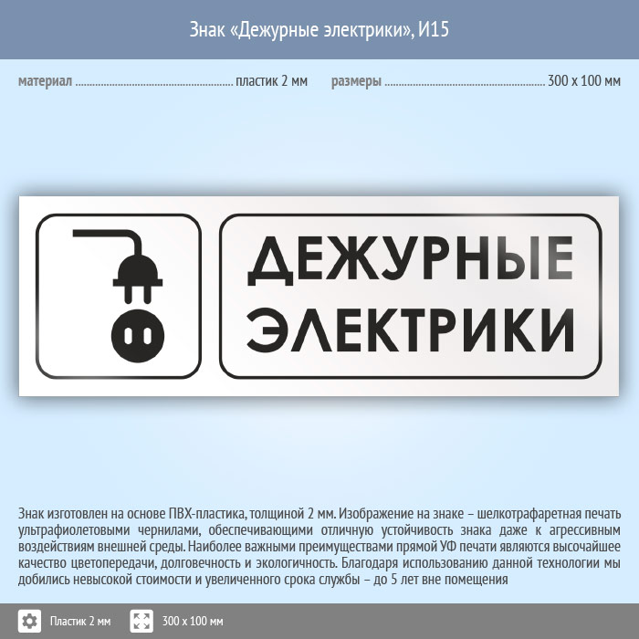 Знак «Дежурные электрики», И15 (пластик, 300х100 мм) в Рыбинске купить