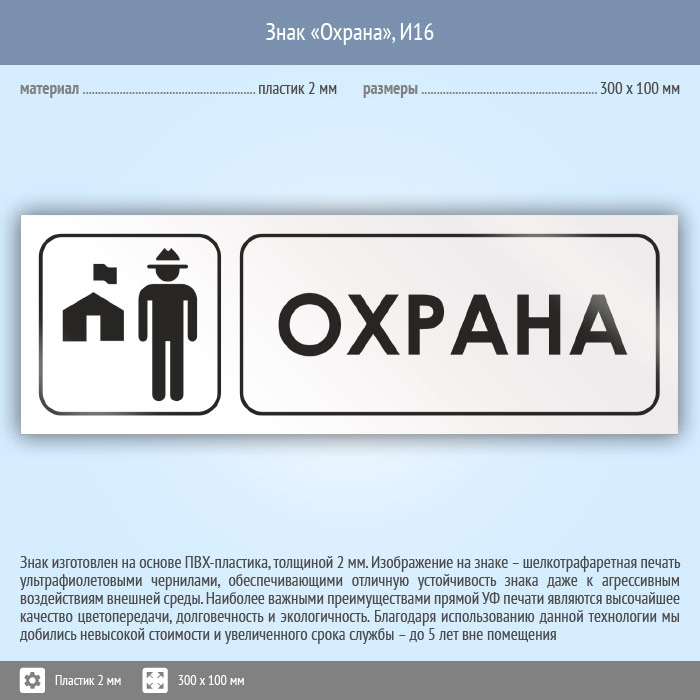 Знак «Охрана», И16 (пластик, 300х100 мм) в Рыбинске купить