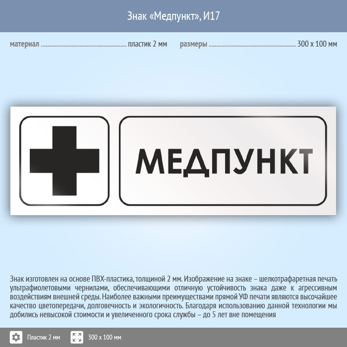 Знак «Медпункт», И17 (пластик, 300х100 мм) в Рыбинске купить
