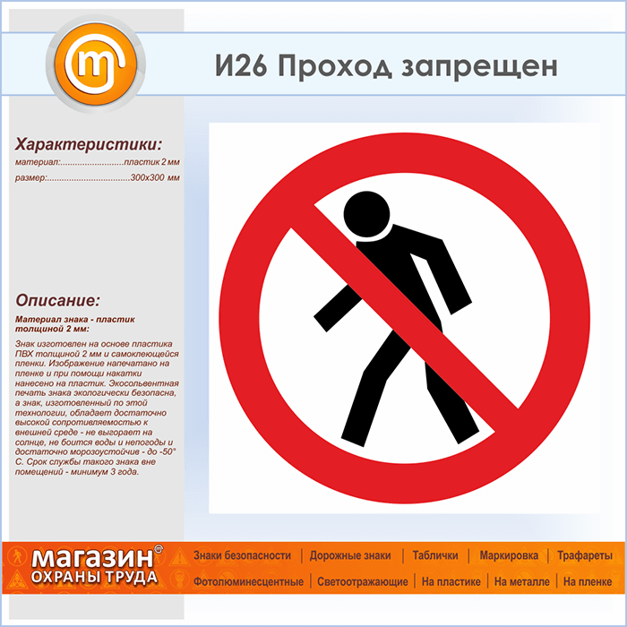 Знак «Проход запрещен», И26 (пластик, 300х300 мм) в Рыбинске купить