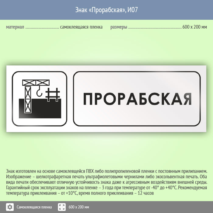 Знак «Прорабская», И07 (пленка, 600х200 мм) в Рыбинске купить