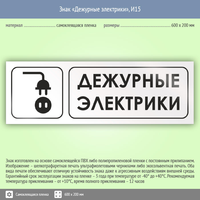 Знак «Дежурные электрики», И15 (пленка, 600х200 мм) в Рыбинске купить