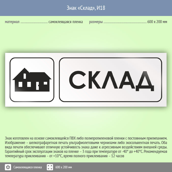 Знак «Склад», И18 (пленка, 600х200 мм) в Рыбинске купить