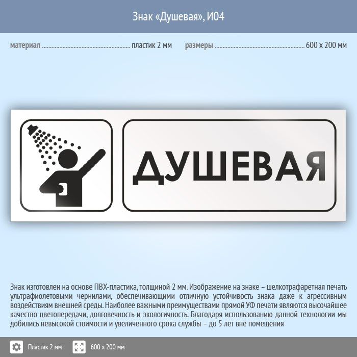 Знак «Душевая», И04 (пластик, 600х200 мм) в Рыбинске купить