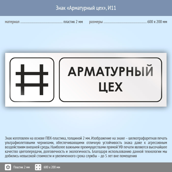 Знак «Арматурный цех», И11 (пластик, 600х200 мм) в Рыбинске купить