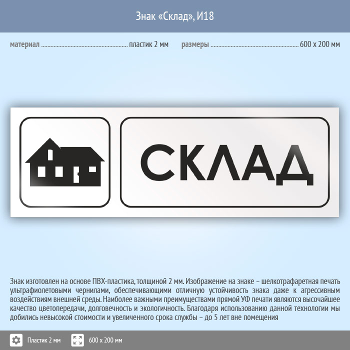Знак «Склад», И18 (пластик, 600х200 мм) в Рыбинске купить