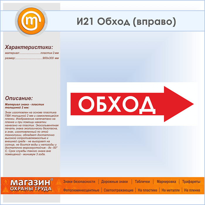 Знак «Обход (вправо)», И21 (пластик, 900х300 мм) в Рыбинске купить