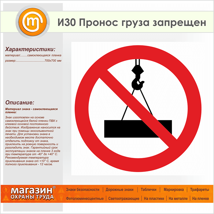 Знак «Пронос груза запрещен», И30 (пленка, 700х700 мм) в Рыбинске купить